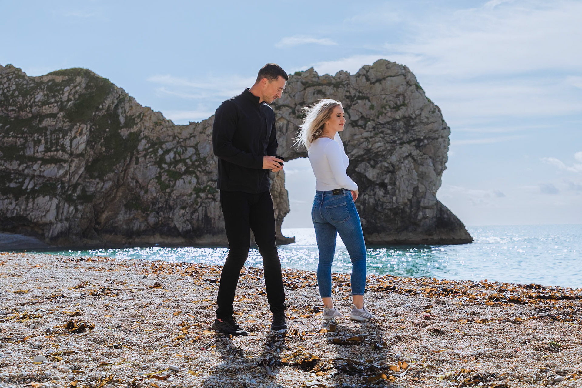 This was such a wonderful moment to capture, Courtney and I worked together to capture this moment for posterity, me and my daughter Sasha approached the couple at Durdle Door and asked to take their pictures, we then asked them to stand back to back to each other and then Courtney turned round and got down on one knee, such an amazing moment!