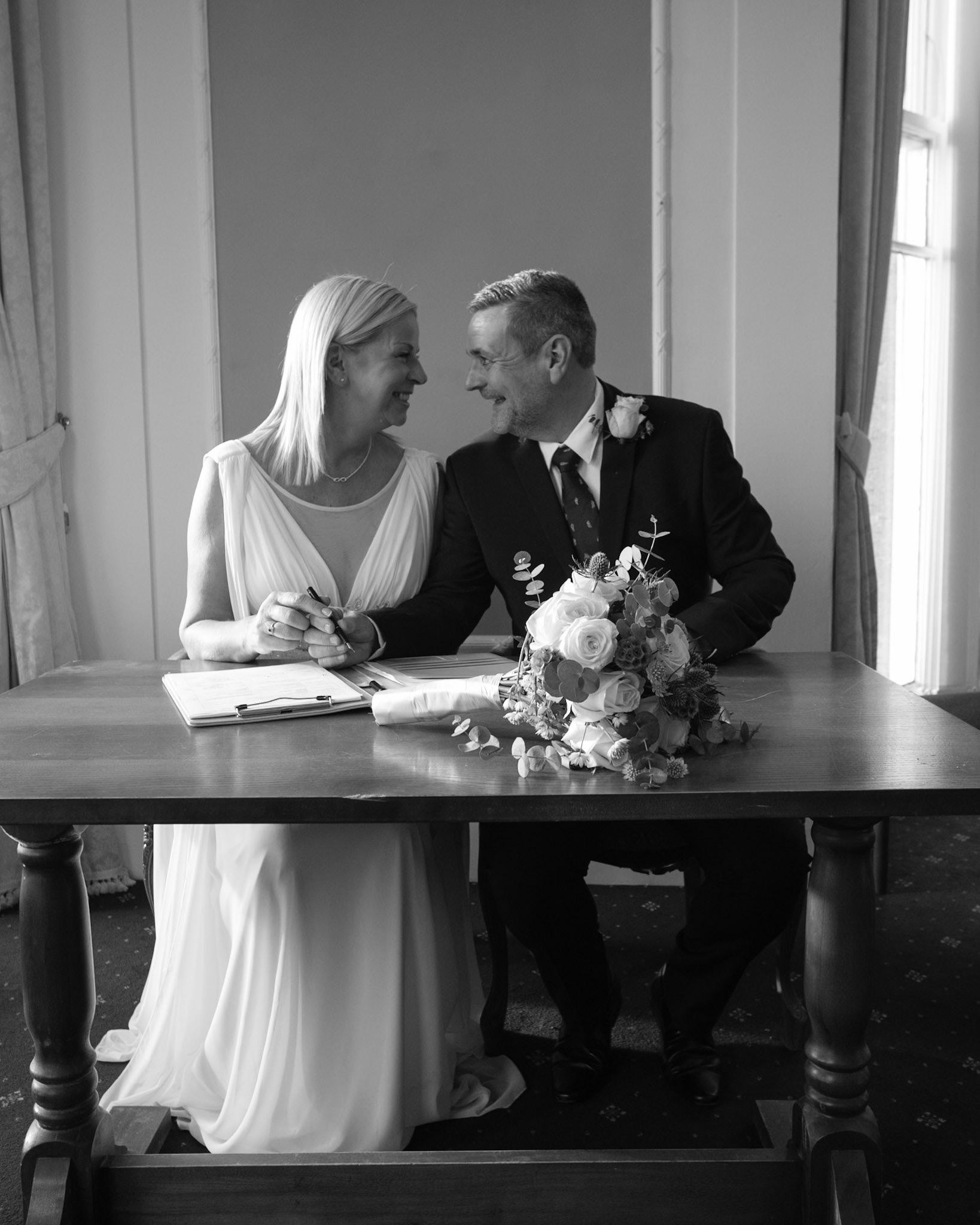 Steve and Sam's winter wedding took place at the Mountfield Registry Office in Bridport with drinks at The Lyme Bay Brewery and the Reception meal at the the Millside Restaurant